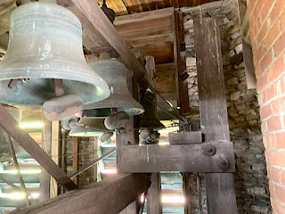 Built in 1925 from local gray fieldstone, the square tower is 67ft in height and surmounted by turreted battlements. The tower contains the bell from the previous church and a memorial set of chime bells (a.k.a. carillon), ranging in size from 275 to 2000 pounds. The carillon was built and installed way back in 1925 by the MeNeely Bell Company of Troy NY.